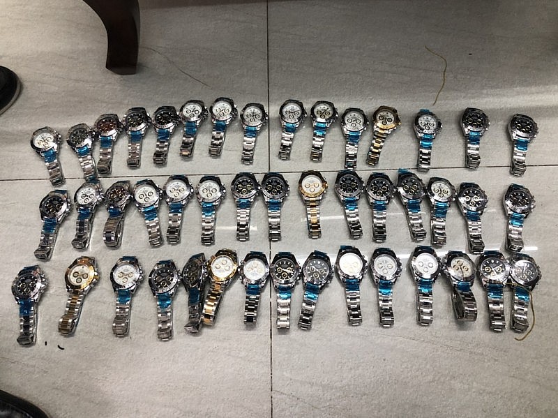Đoàn kiểm tra tiến hành kiểm tra số lượng hàng hóa đang trưng bày, kinh doanh tại địa chỉ nêu trên. Kết quả kiểm tra phát hiện: hàng hóa là đồng hồ đeo tay các loại, chưa qua sử dụng, không hóa đơn chứng từ, có nhãn gốc bằng tiếng nước ngoài không có nhãn phụ bằng tiếng Việt Nam theo quy định, có dấu hiệu giả mạo nhãn hiệu đang được bảo hộ tại Việt Nam thương hiệu: Rolex, Chanel, Gucci,...
